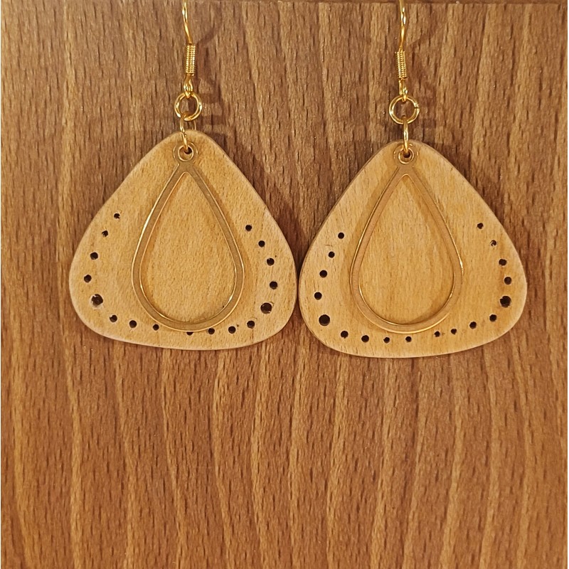 Boucles d'oreilles faites à la main, avec une chantourneuse, en bois de sycomore fumé